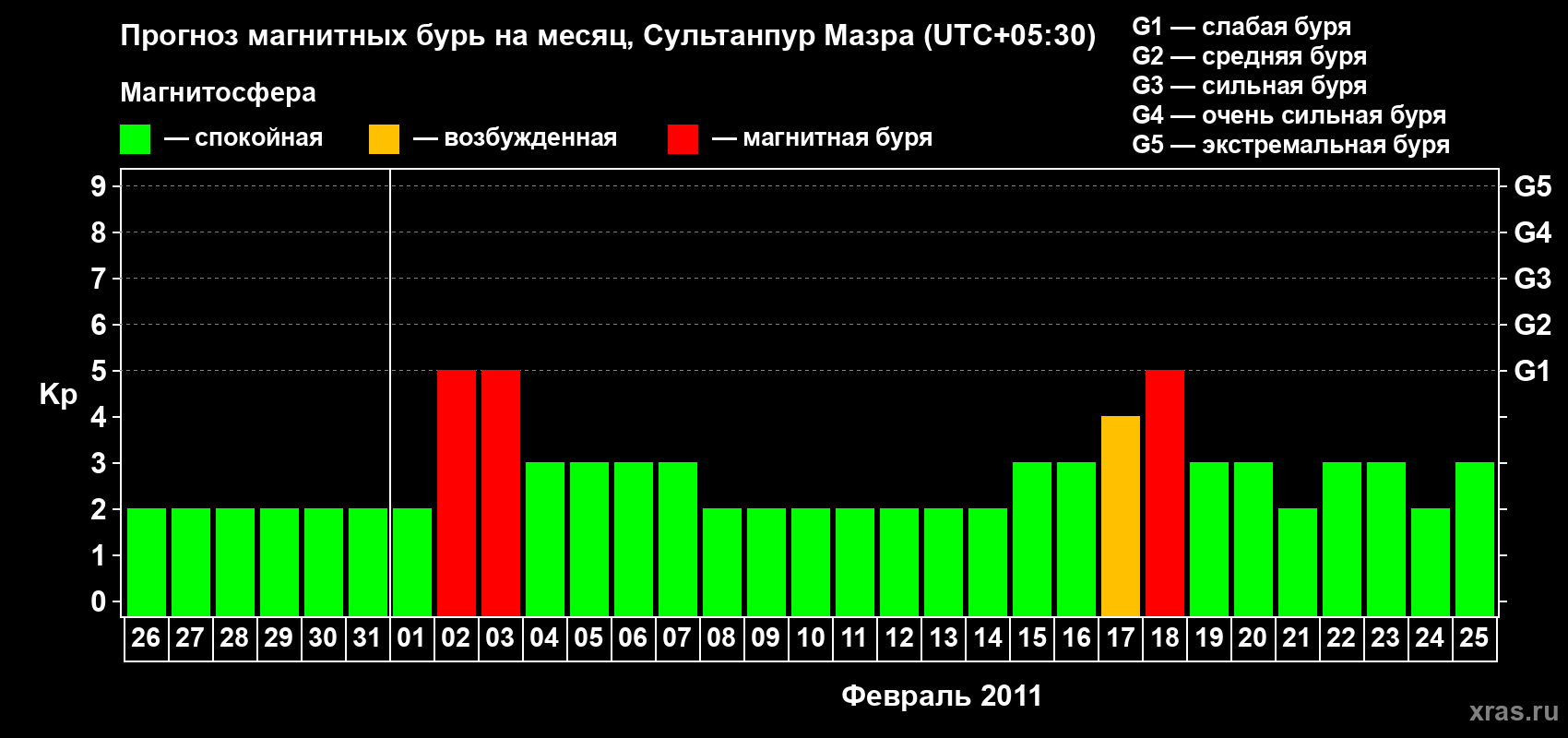 Прогноз магнитных бурь в Сультанпур Мазре — 26 января 2011 года
