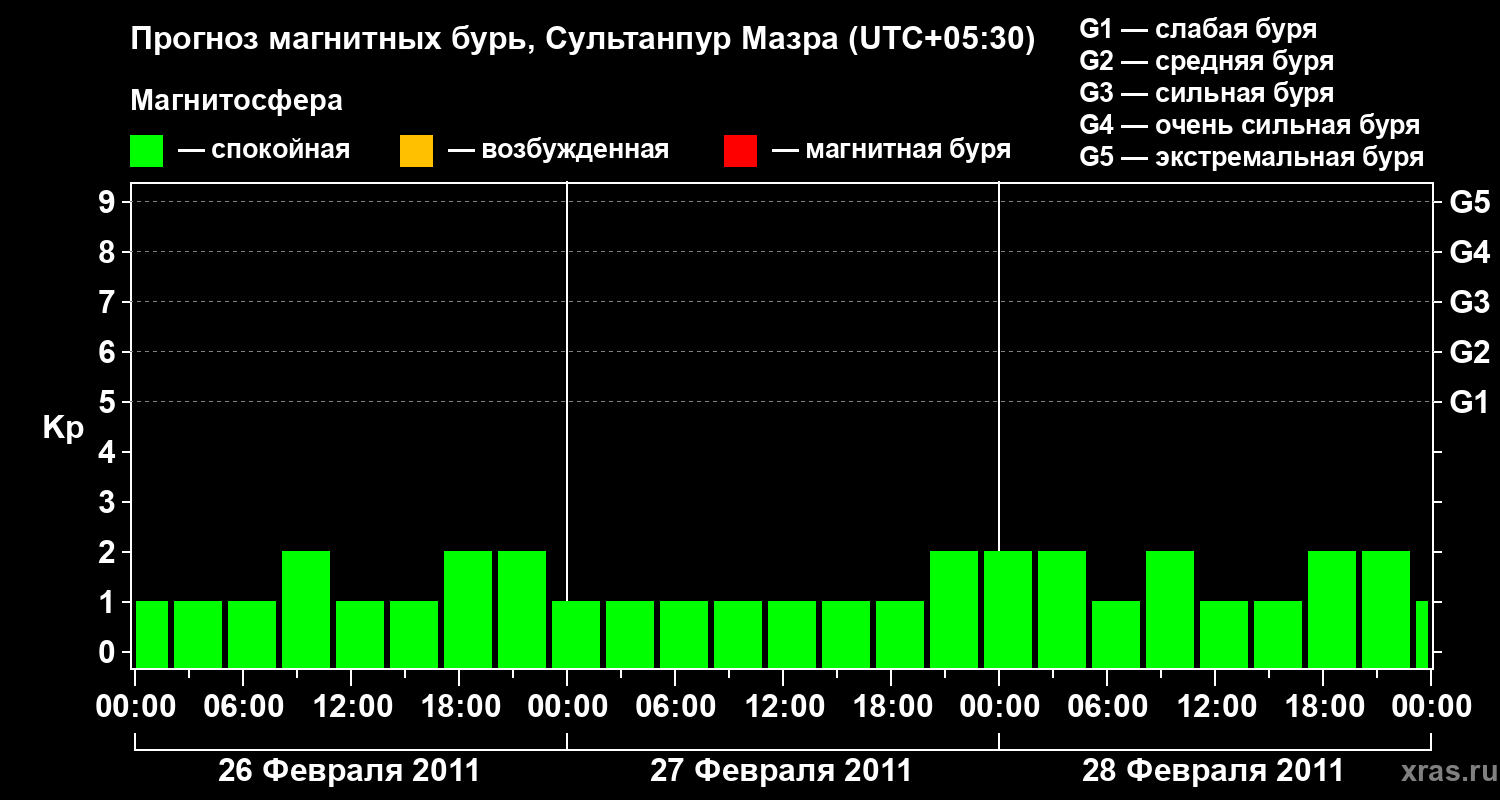 Прогноз магнитных бурь в Сультанпур Мазре — 26 февраля 2011 года