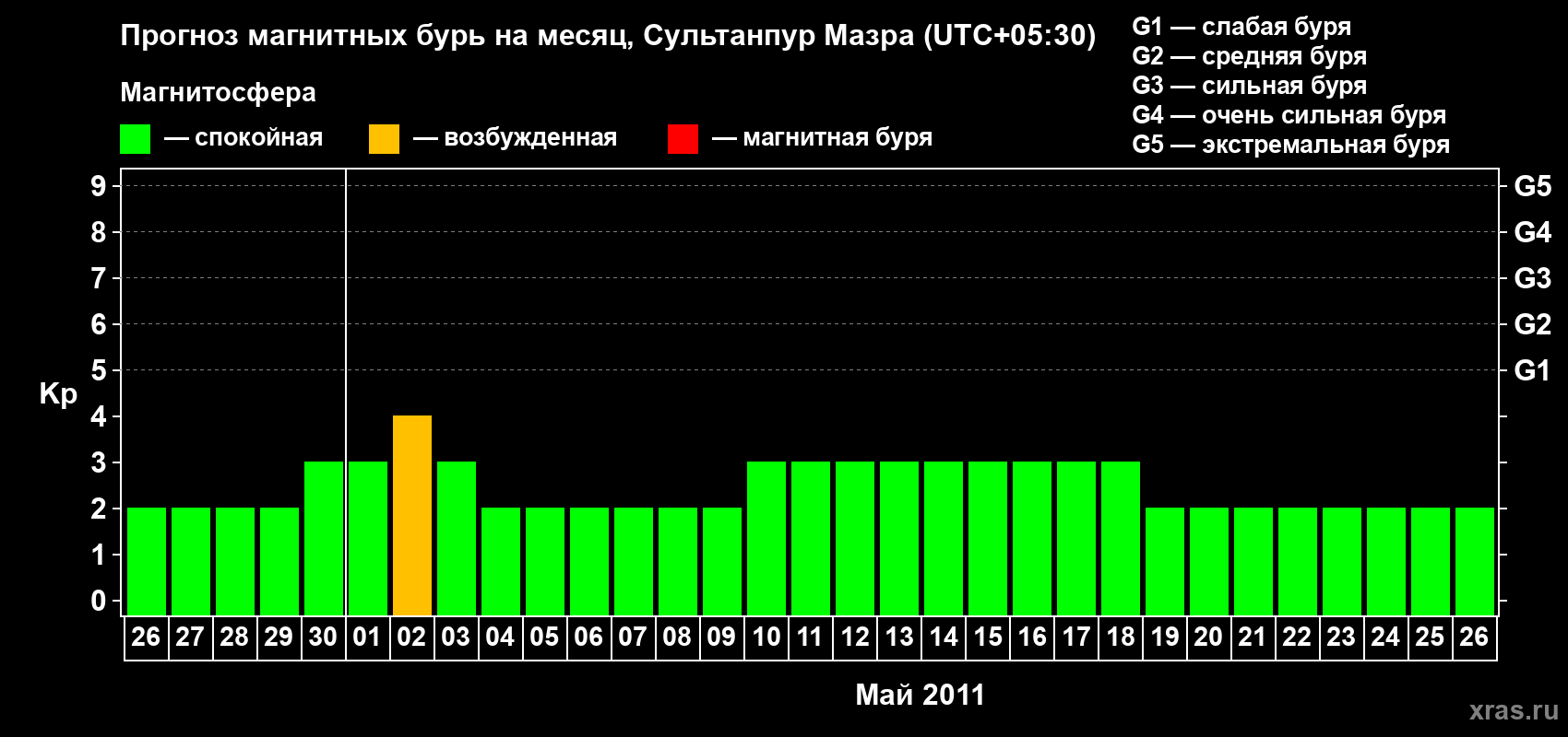 Прогноз магнитных бурь в Сультанпур Мазре — 26 апреля 2011 года