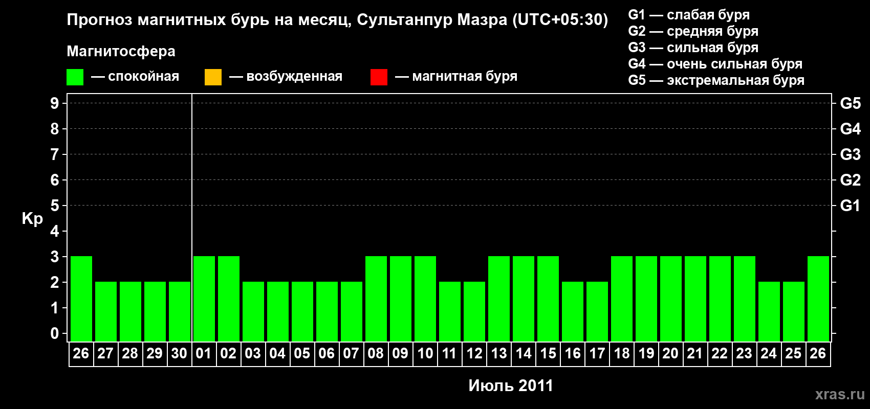 Прогноз магнитных бурь в Сультанпур Мазре — 26 июня 2011 года