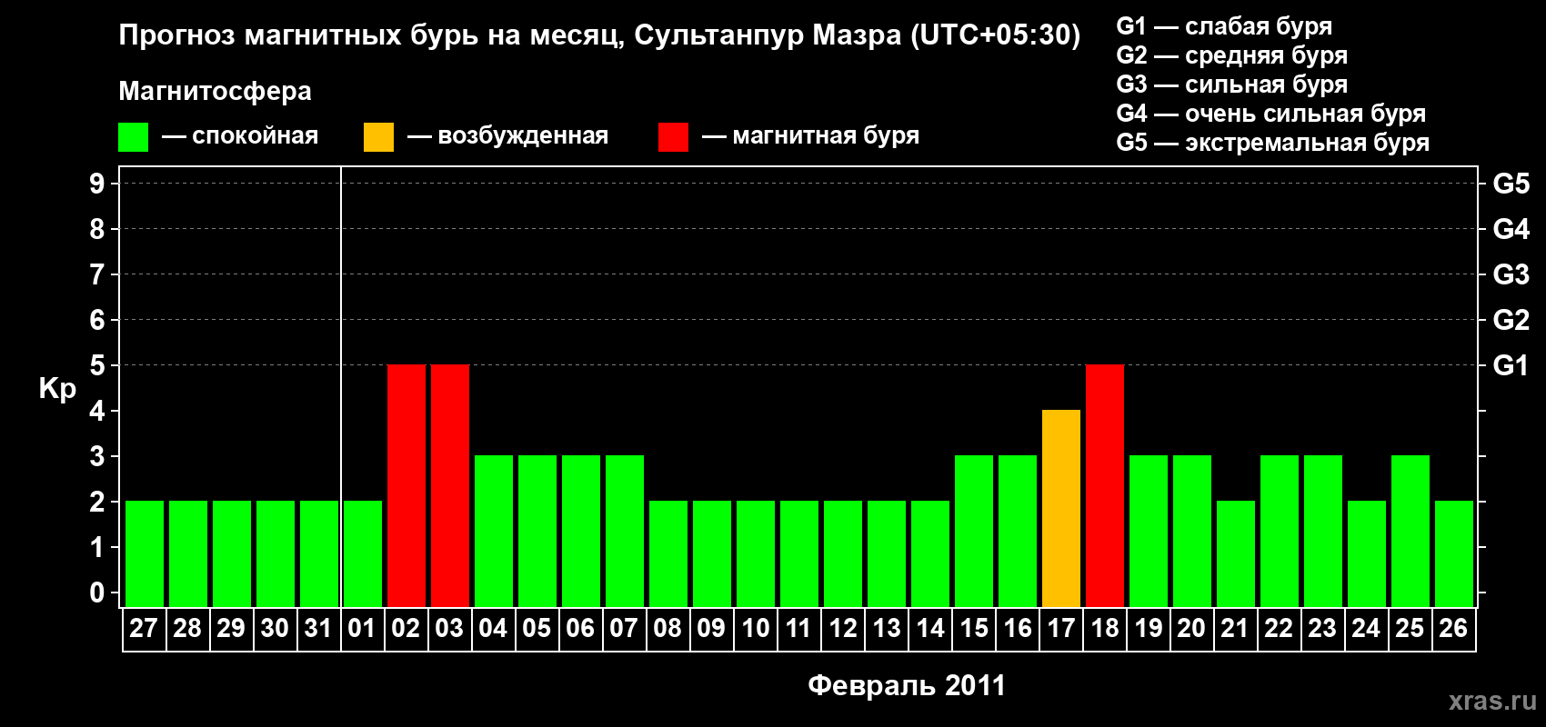 Прогноз магнитных бурь в Сультанпур Мазре — 27 января 2011 года