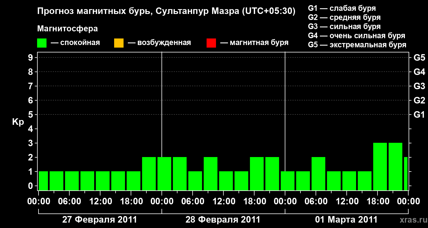 Прогноз магнитных бурь в Сультанпур Мазре — 27 февраля 2011 года