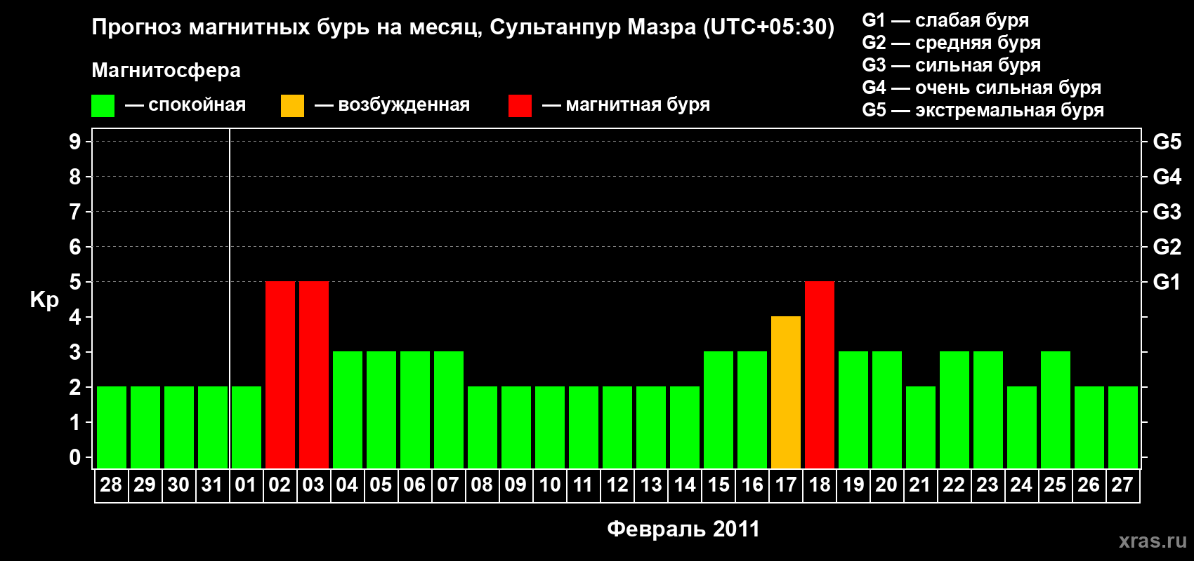 Прогноз магнитных бурь в Сультанпур Мазре — 28 января 2011 года