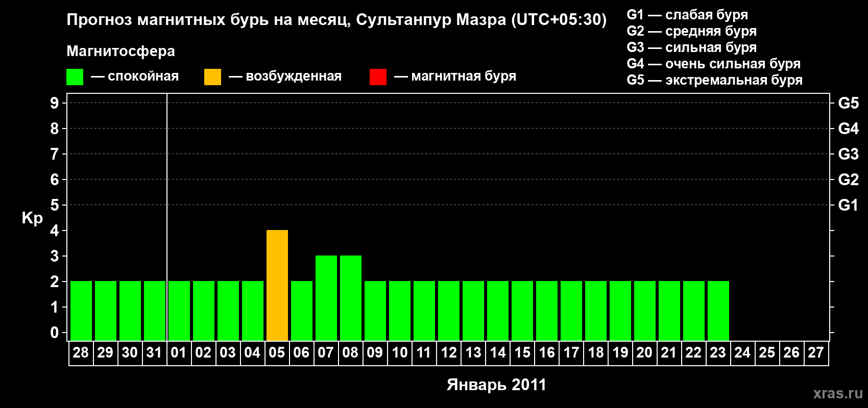 Прогноз магнитных бурь в Сультанпур Мазре — 28 декабря 2010 года