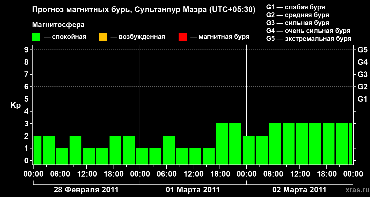Прогноз магнитных бурь в Сультанпур Мазре — 28 февраля 2011 года