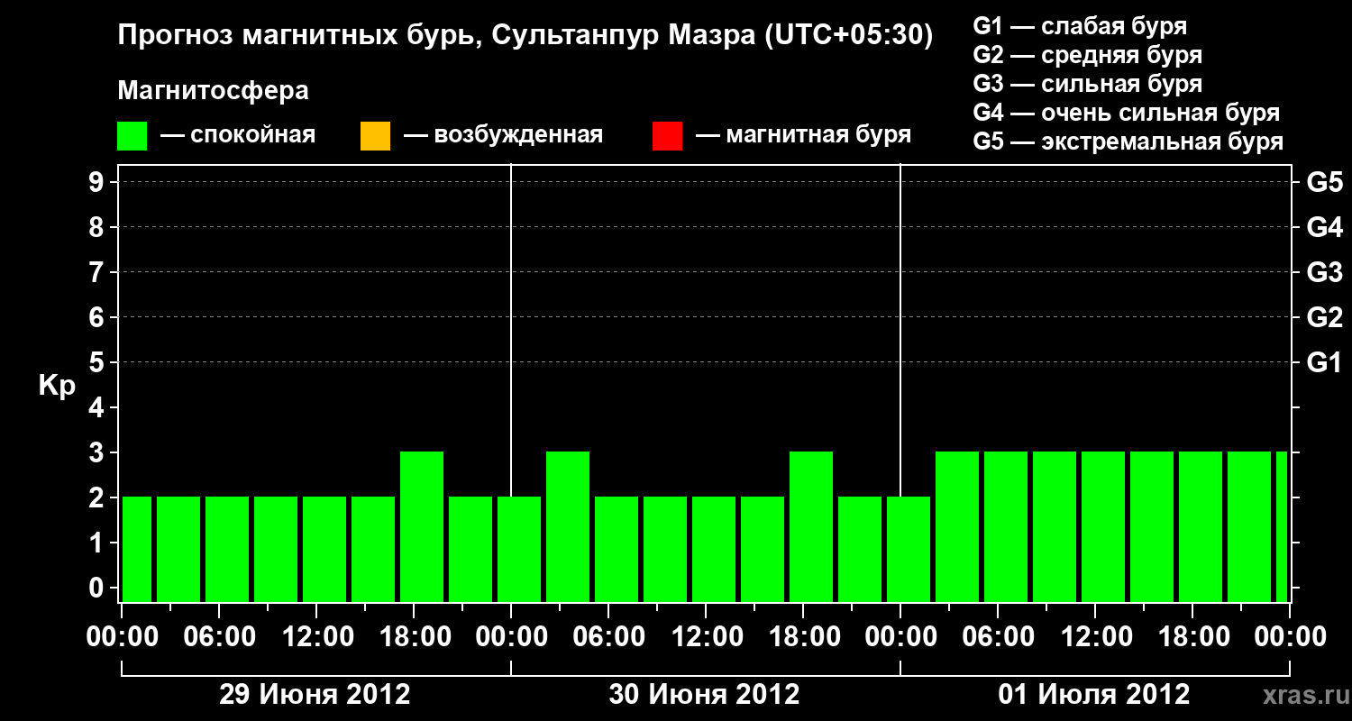 Прогноз магнитных бурь в Сультанпур Мазре — 29 июня 2012 года