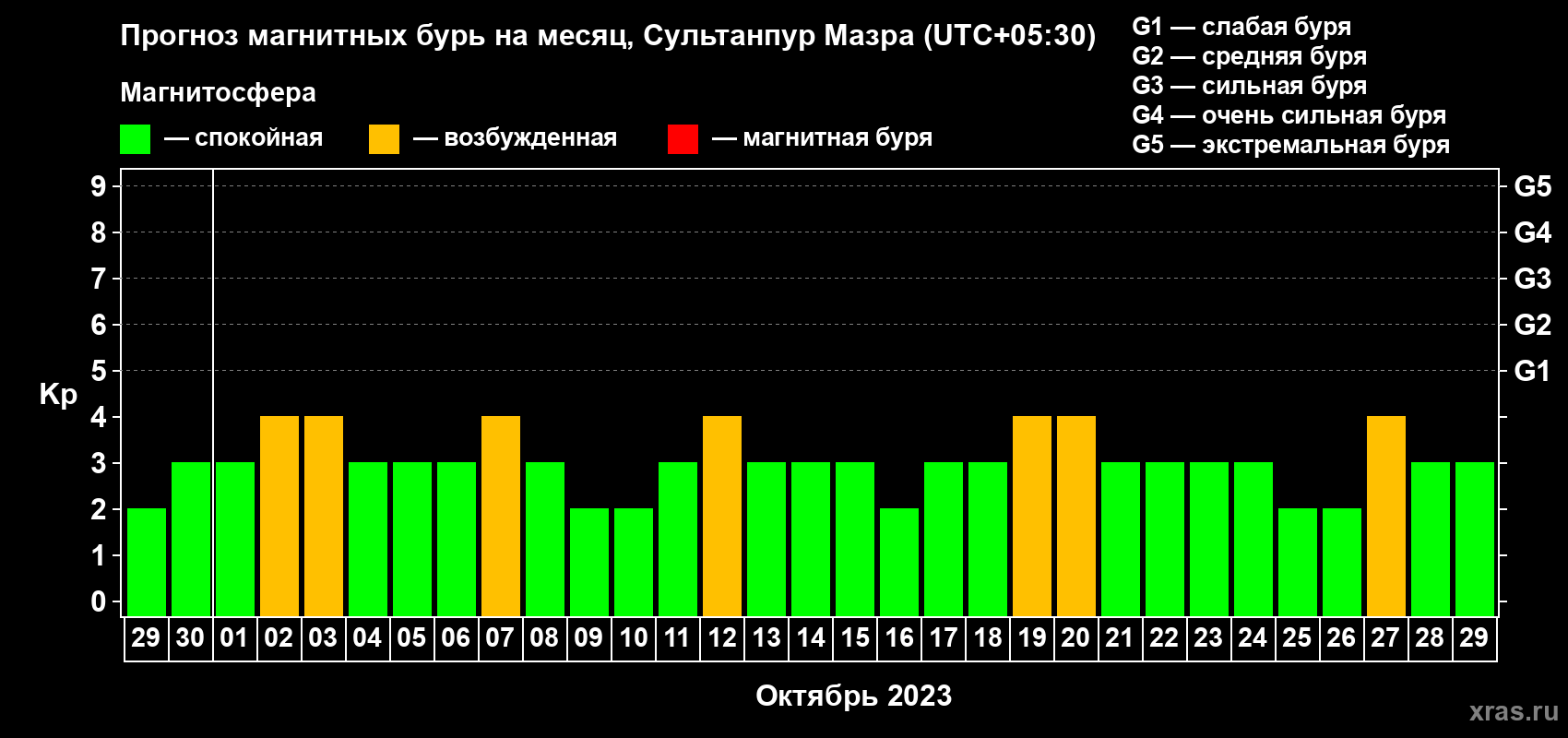 Прогноз магнитных бурь в Сультанпур Мазре — 29 сентября 2023 года