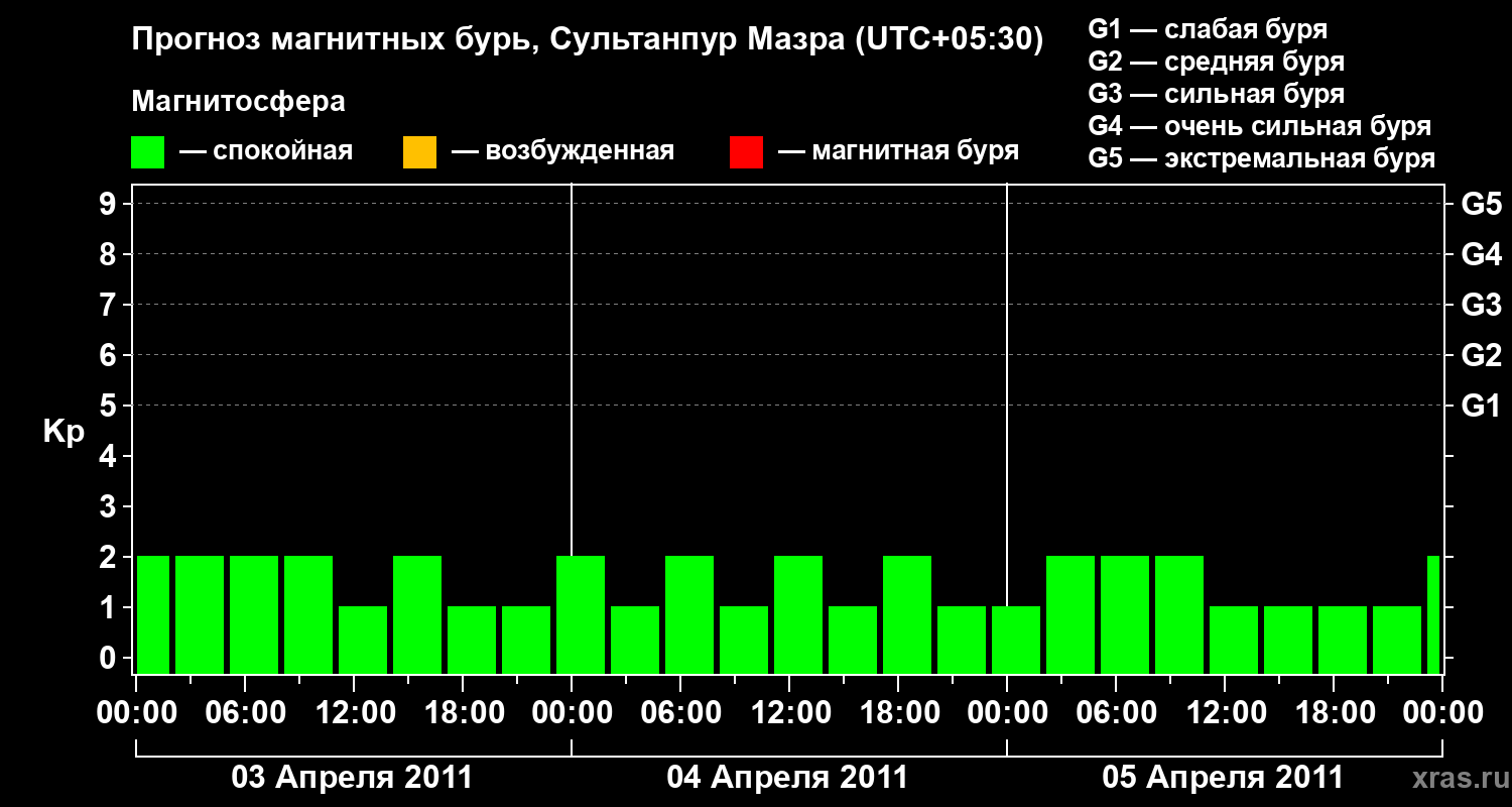 Прогноз магнитных бурь в Сультанпур Мазре — 3 апреля 2011 года