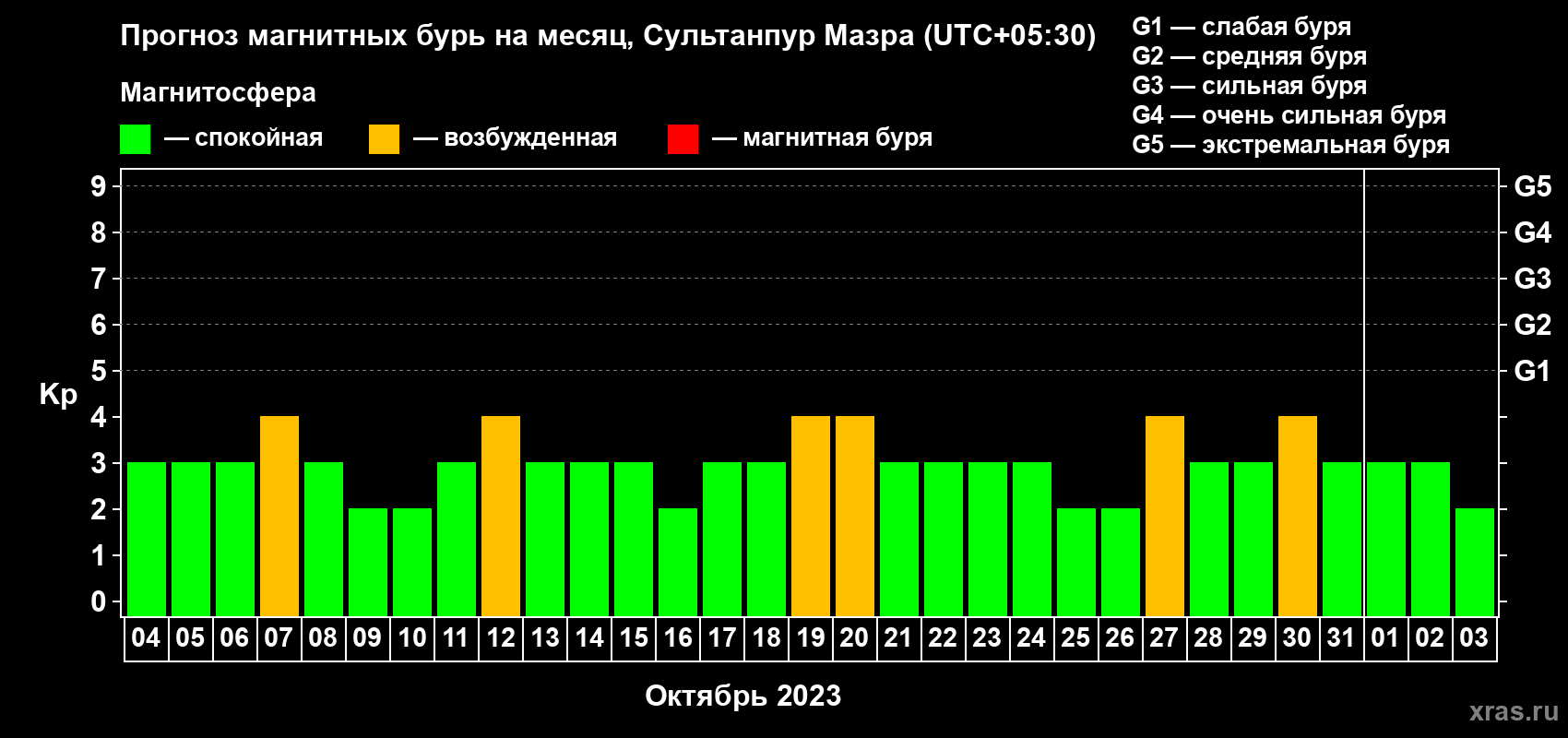 Прогноз магнитных бурь в Сультанпур Мазре — 4 октября 2023 года