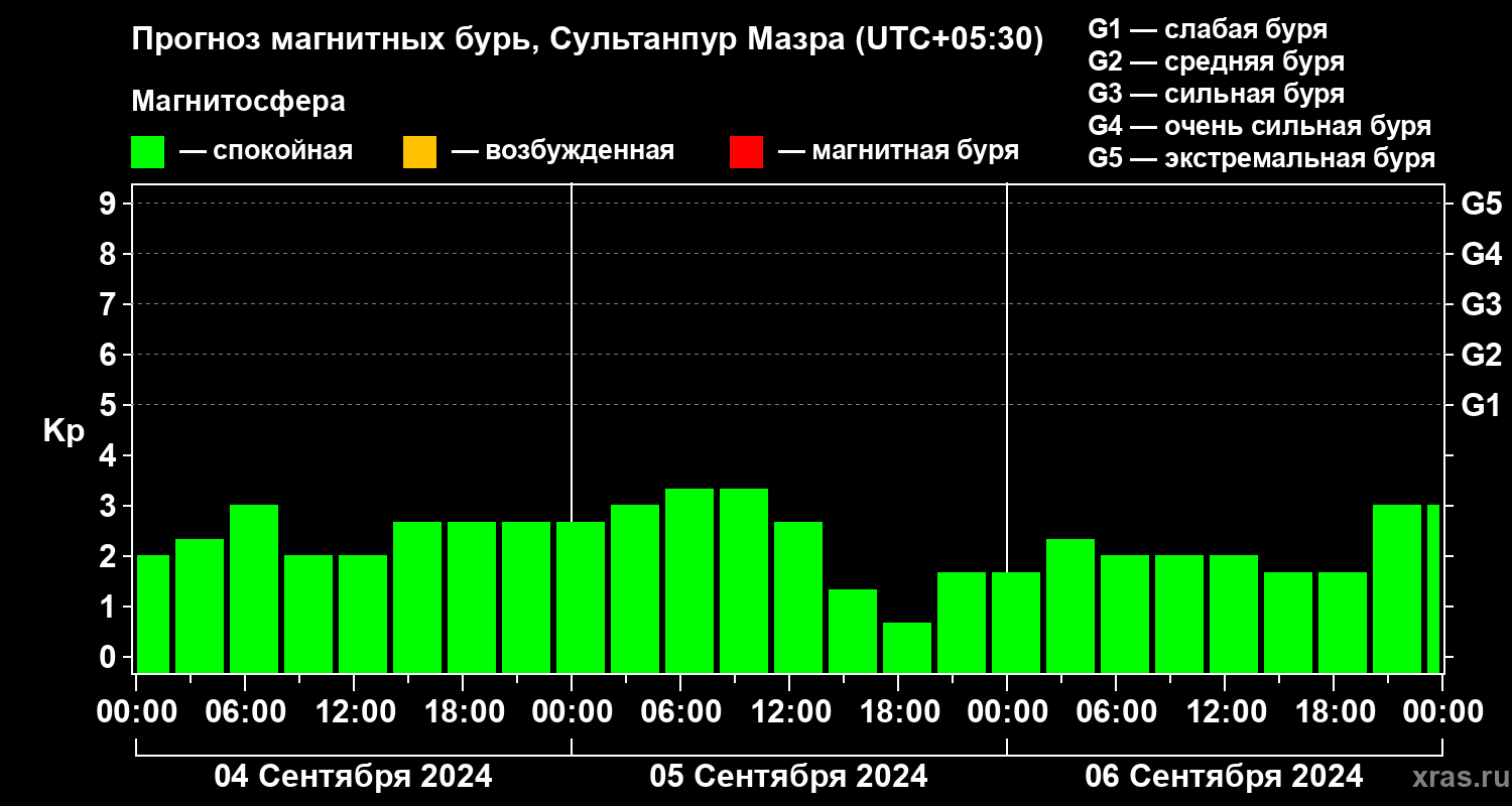 Прогноз магнитных бурь в Сультанпур Мазре — 4 сентября 2024 года