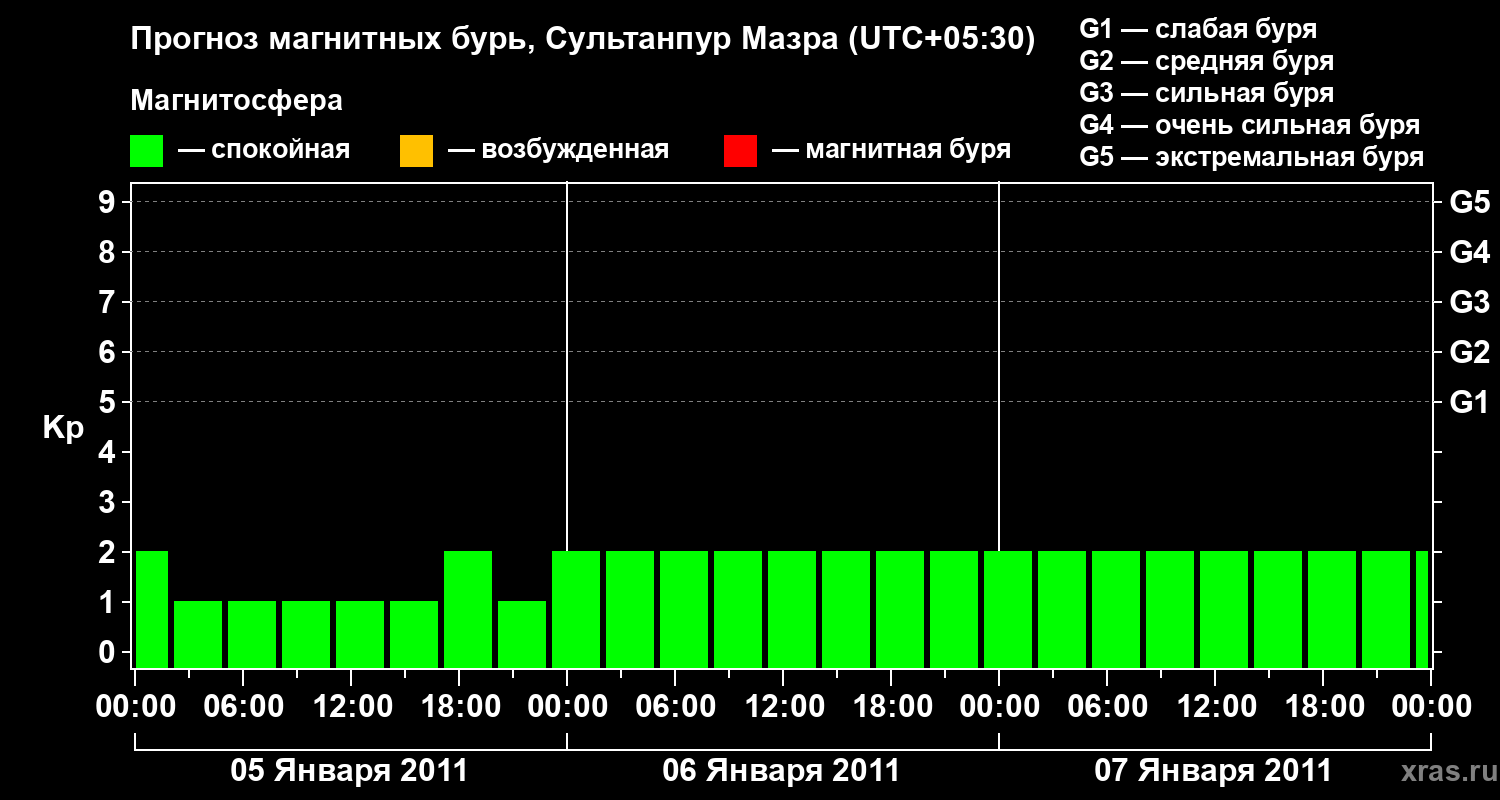 Прогноз магнитных бурь в Сультанпур Мазре — 5 января 2011 года