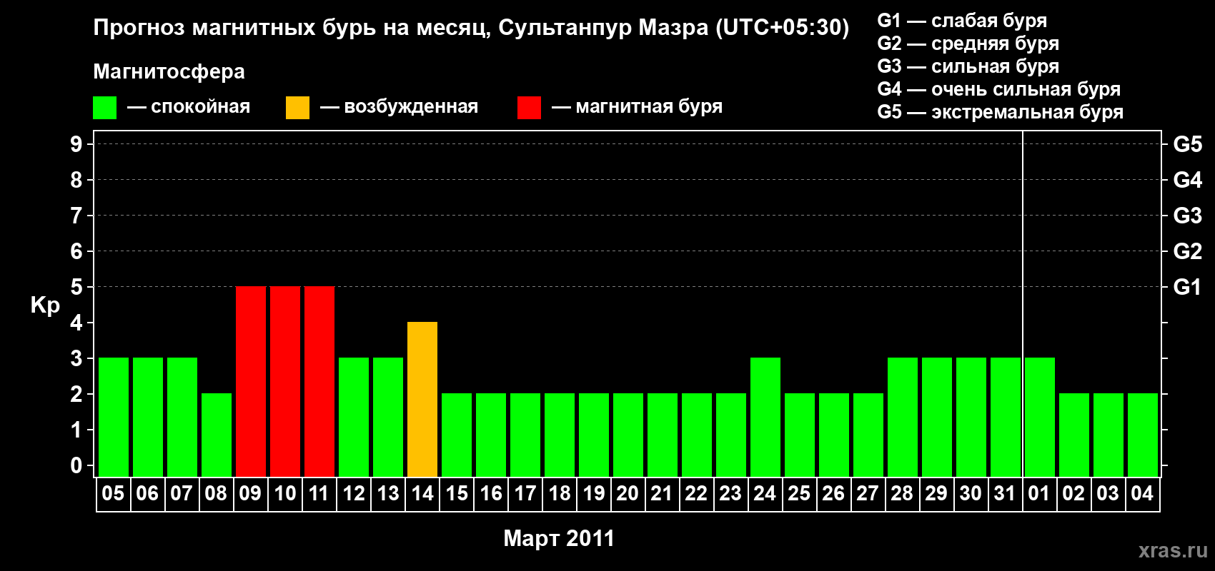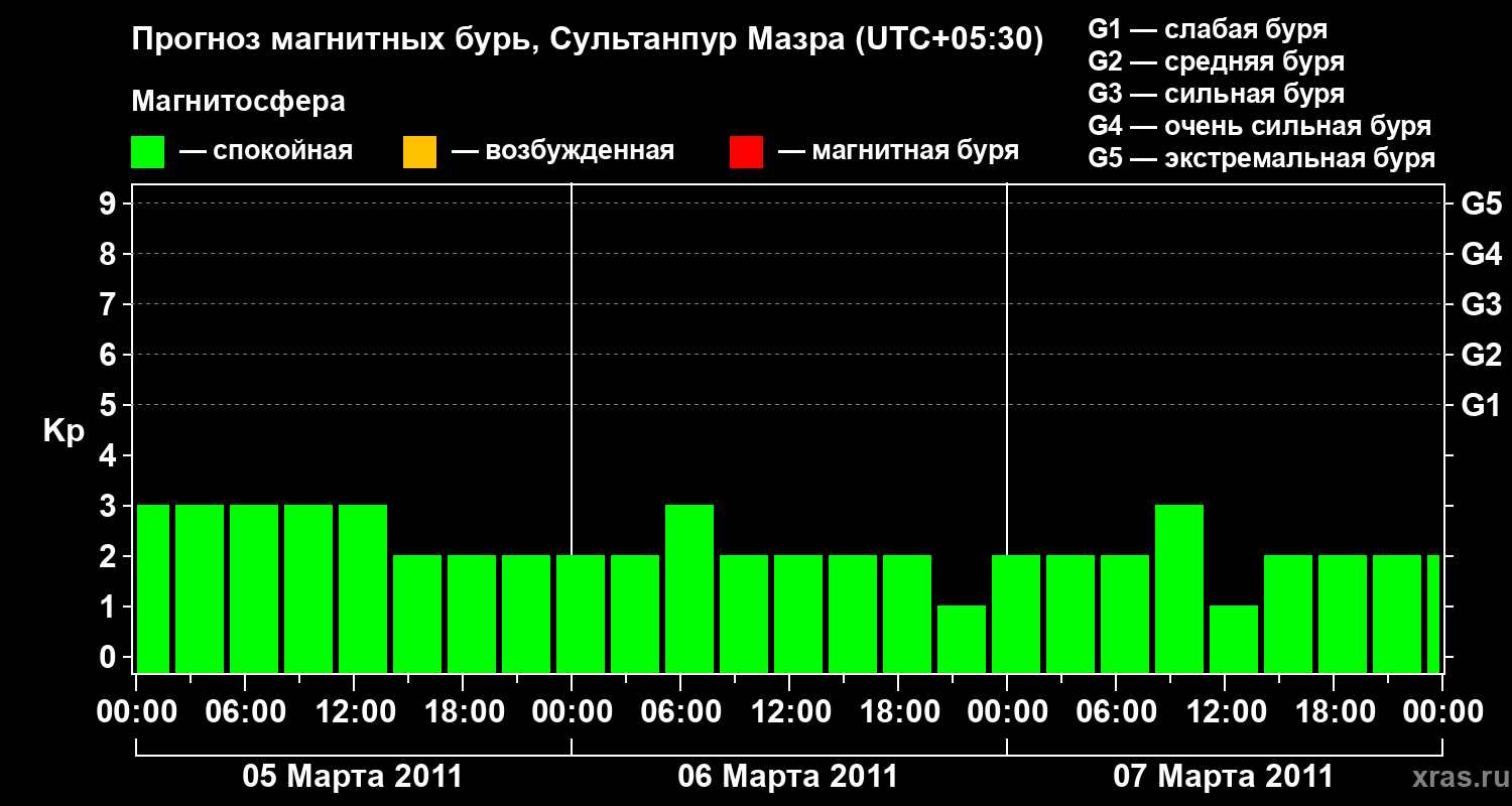 Прогноз магнитных бурь в Сультанпур Мазре — 5 марта 2011 года