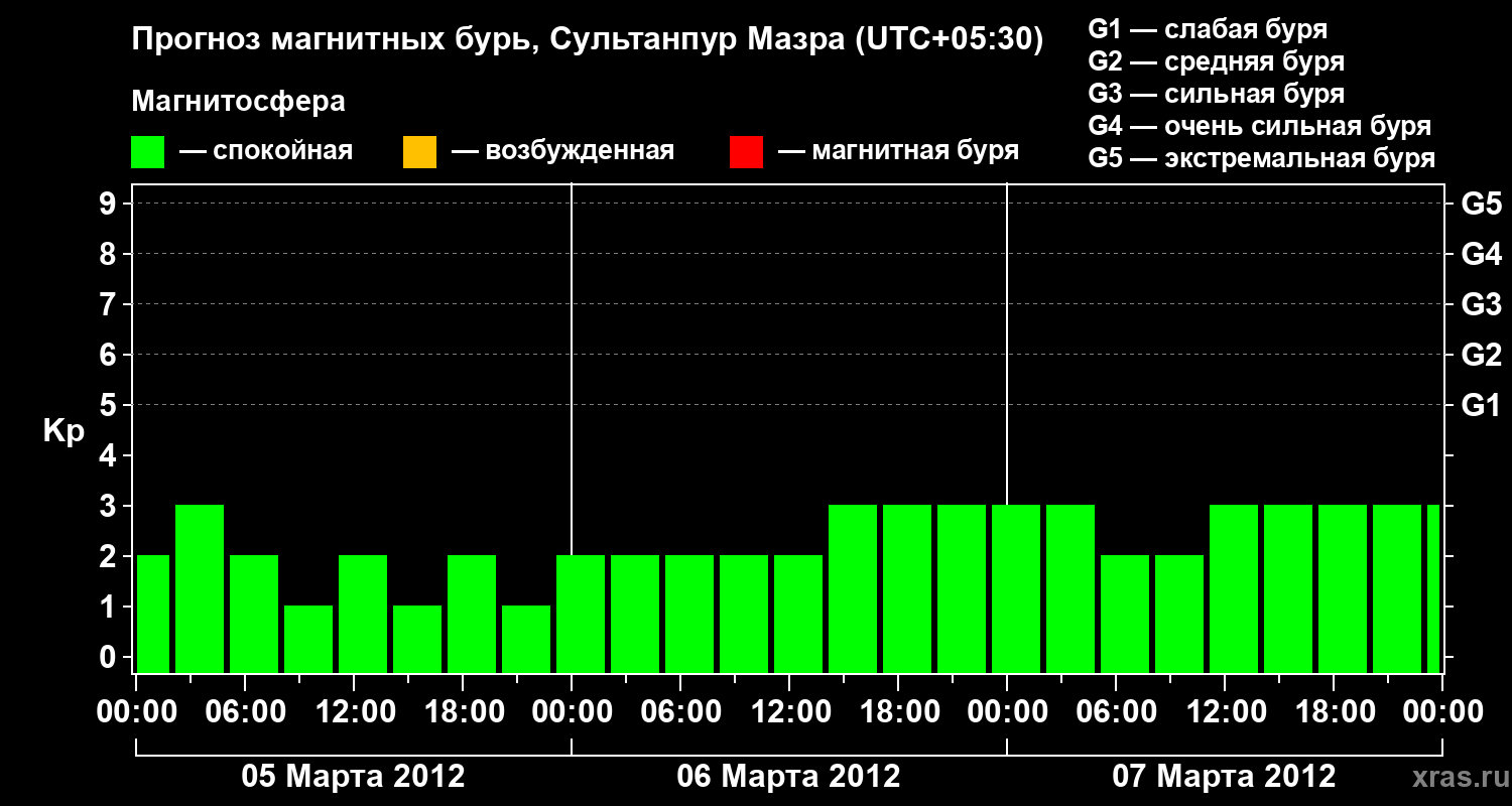 Прогноз магнитных бурь в Сультанпур Мазре — 5 марта 2012 года