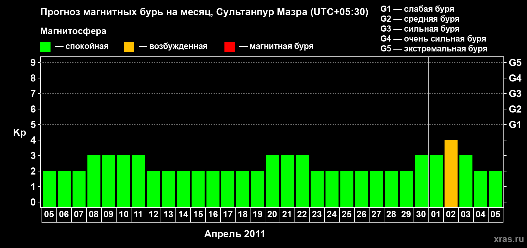 Прогноз магнитных бурь в Сультанпур Мазре — 5 апреля 2011 года