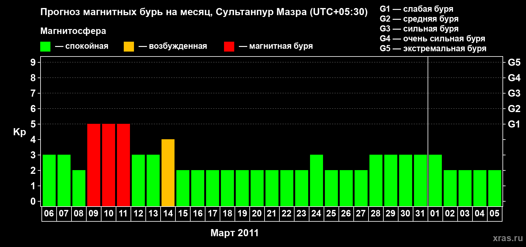 Прогноз магнитных бурь в Сультанпур Мазре — 6 марта 2011 года