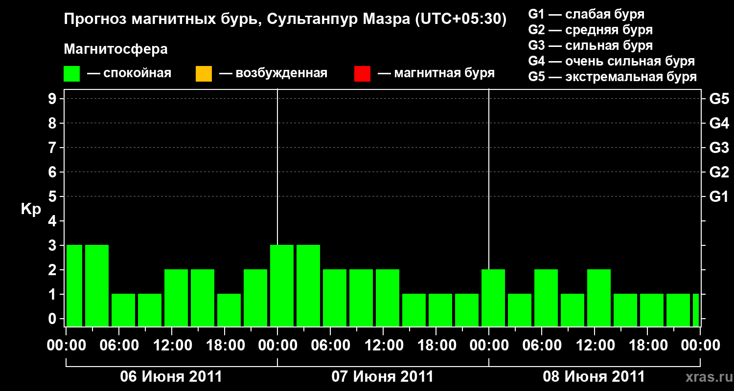 Прогноз магнитных бурь в Сультанпур Мазре — 6 июня 2011 года