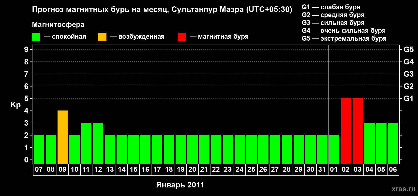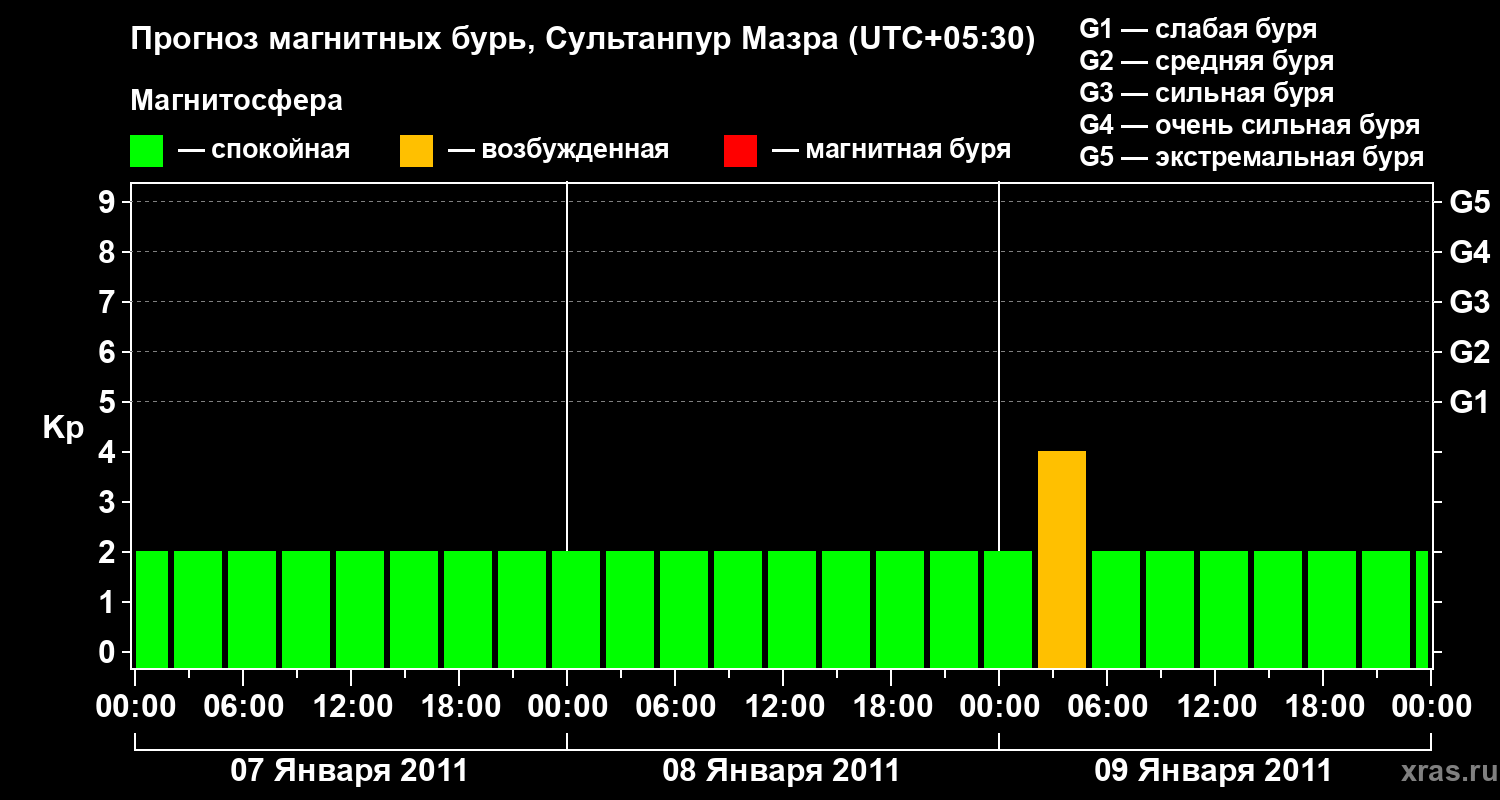 Прогноз магнитных бурь в Сультанпур Мазре — 7 января 2011 года