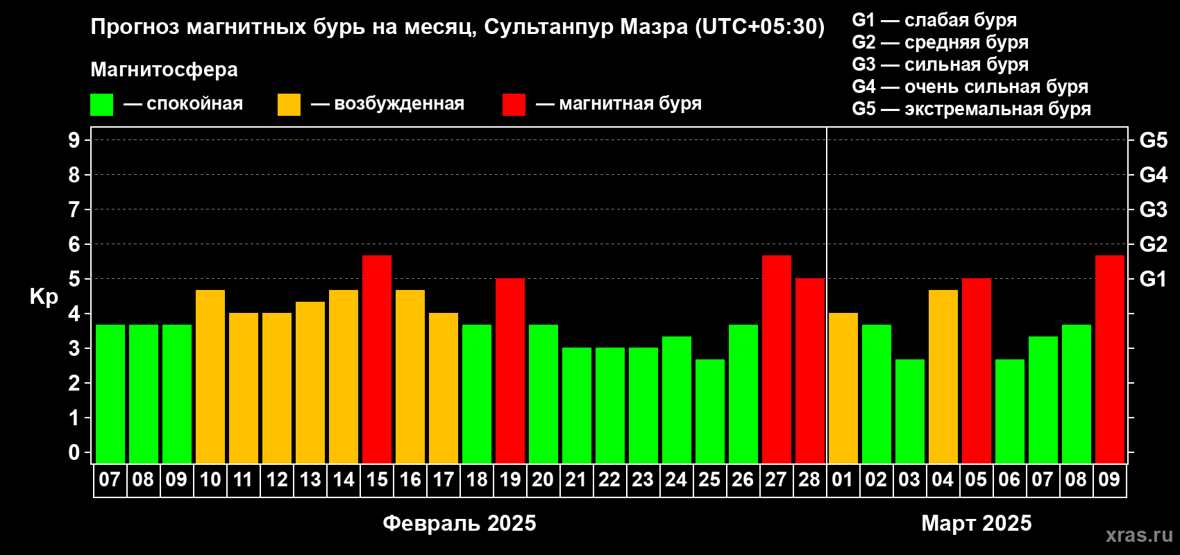 Прогноз магнитных бурь в Сультанпур Мазре — 7 февраля 2025 года
