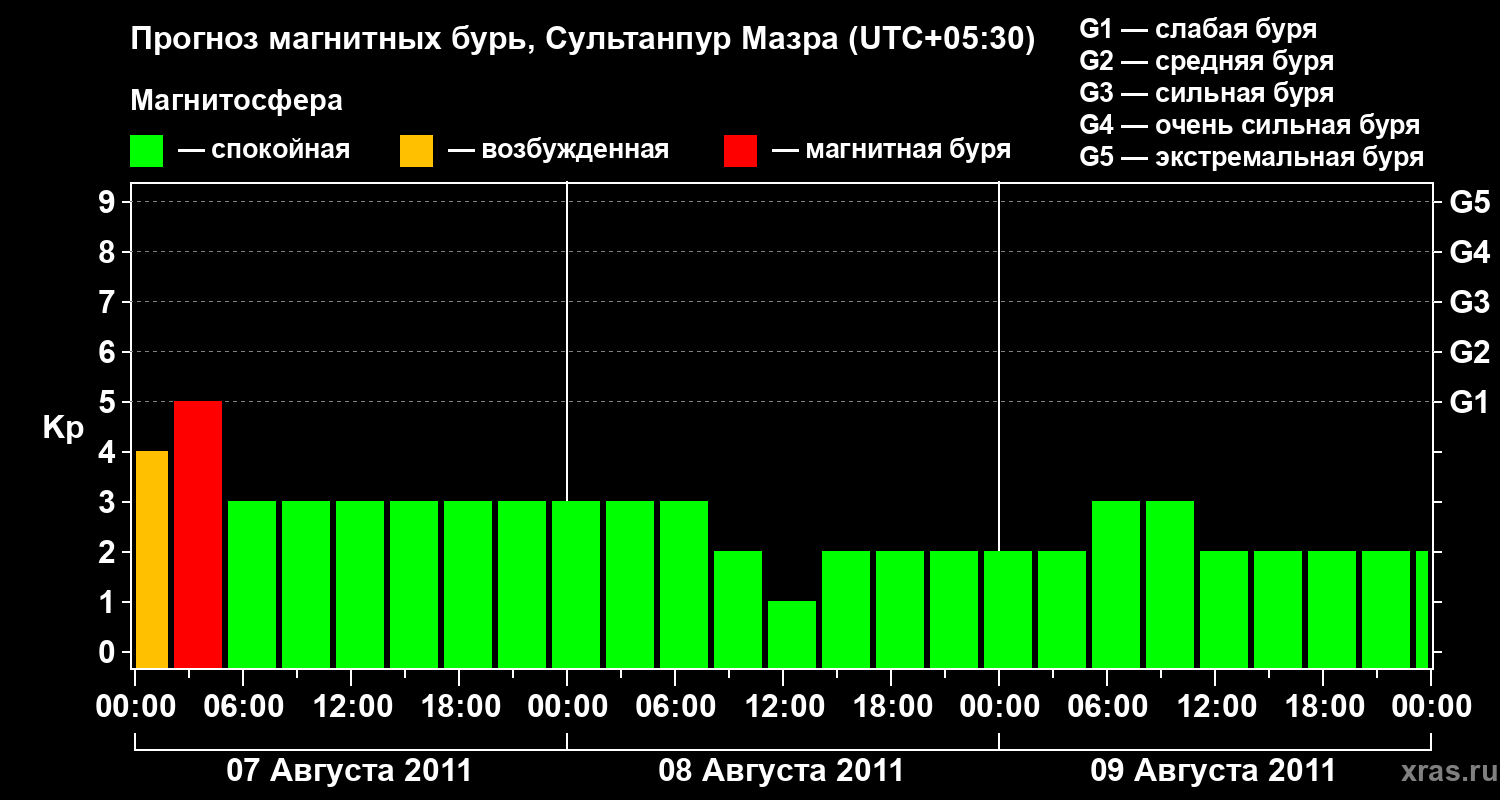 Прогноз магнитных бурь в Сультанпур Мазре — 7 августа 2011 года