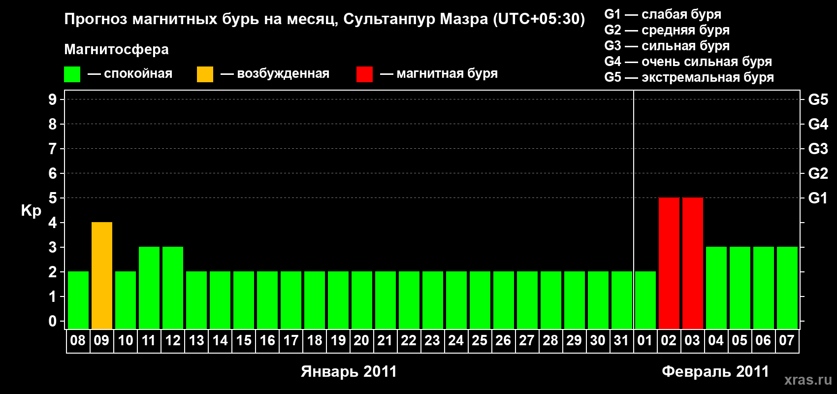 Прогноз магнитных бурь в Сультанпур Мазре — 8 января 2011 года