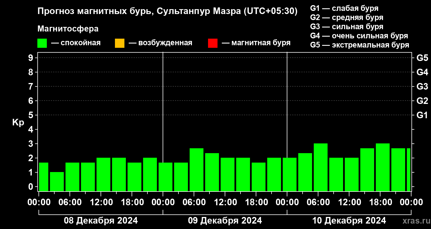 Прогноз магнитных бурь в Сультанпур Мазре на 8 декабря 2024 года