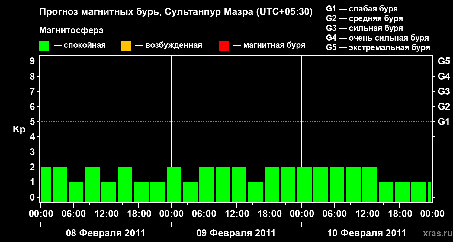Прогноз магнитных бурь в Сультанпур Мазре — 8 февраля 2011 года
