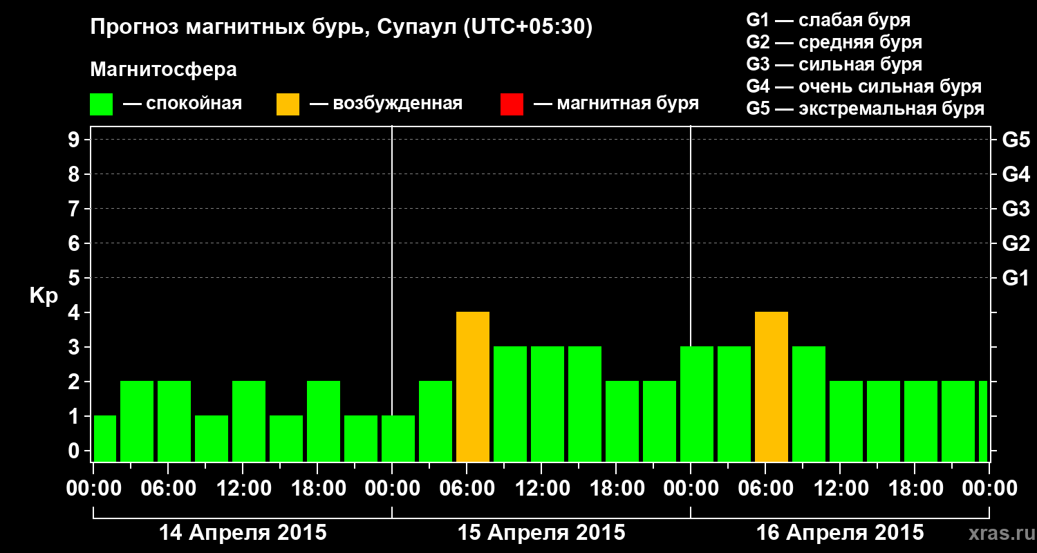Прогноз магнитных бурь в Супауле — 14 апреля 2015 года