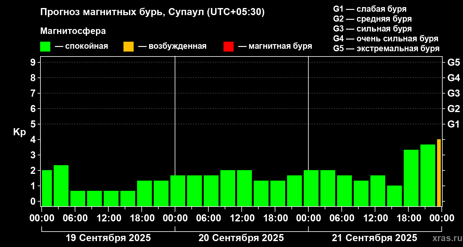 Прогноз магнитных бурь в Супауле — 19 сентября 2025 года