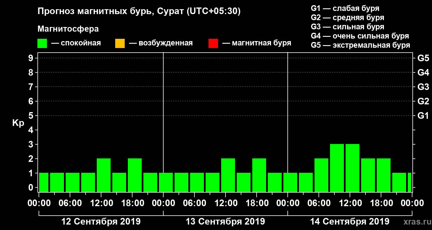 Прогноз магнитных бурь в Сурате — 12 сентября 2019 года