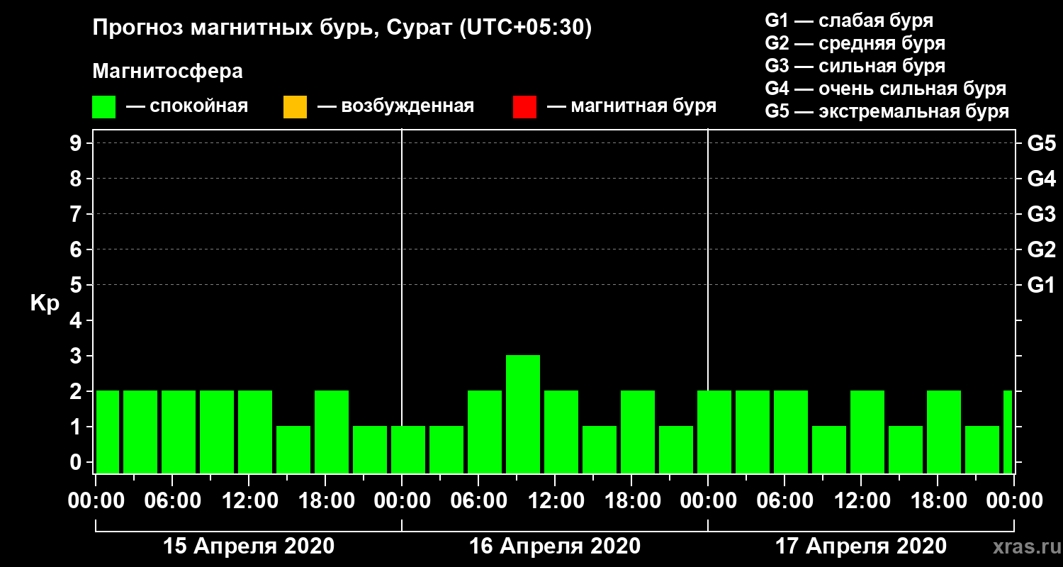 Прогноз магнитных бурь в Сурате — 15 апреля 2020 года