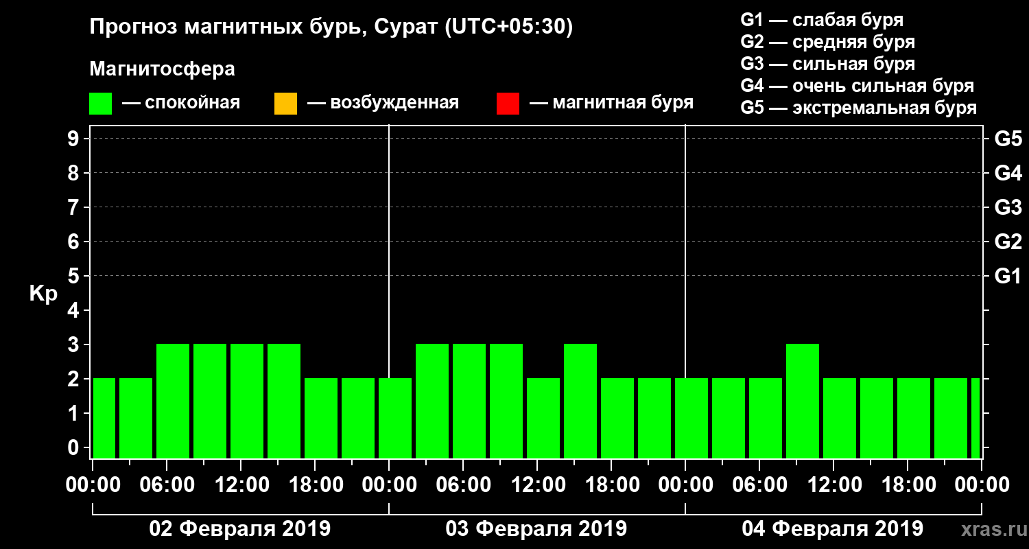 Прогноз магнитных бурь в Сурате — 2 февраля 2019 года