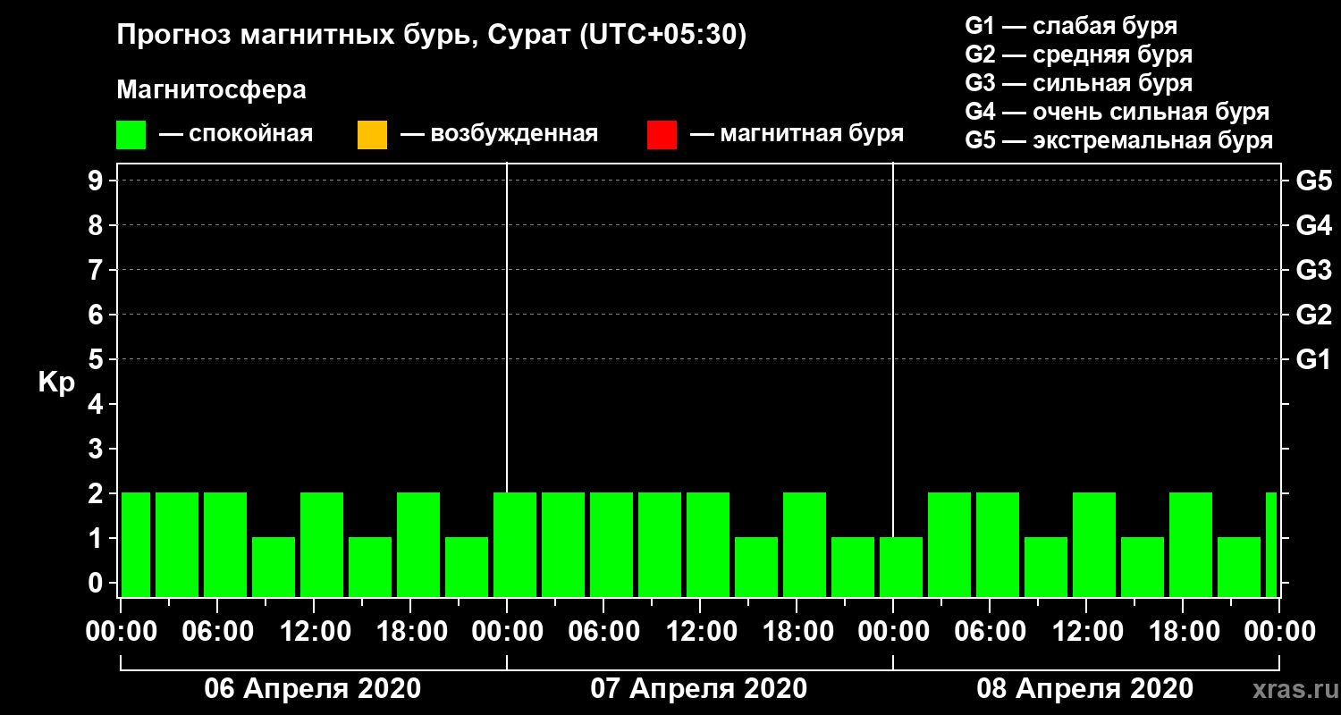 Прогноз магнитных бурь в Сурате — 6 апреля 2020 года