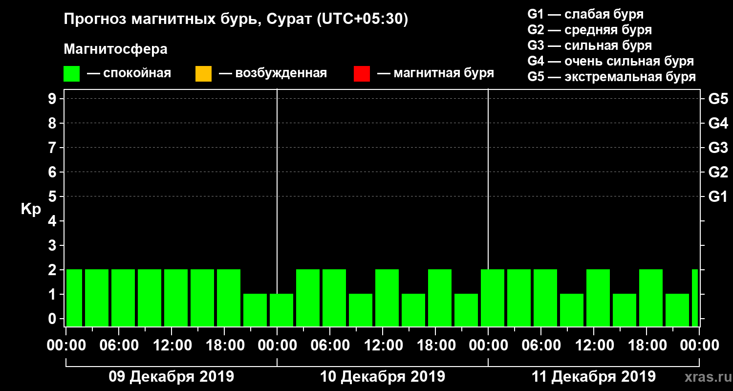 Прогноз магнитных бурь в Сурате — 9 декабря 2019 года