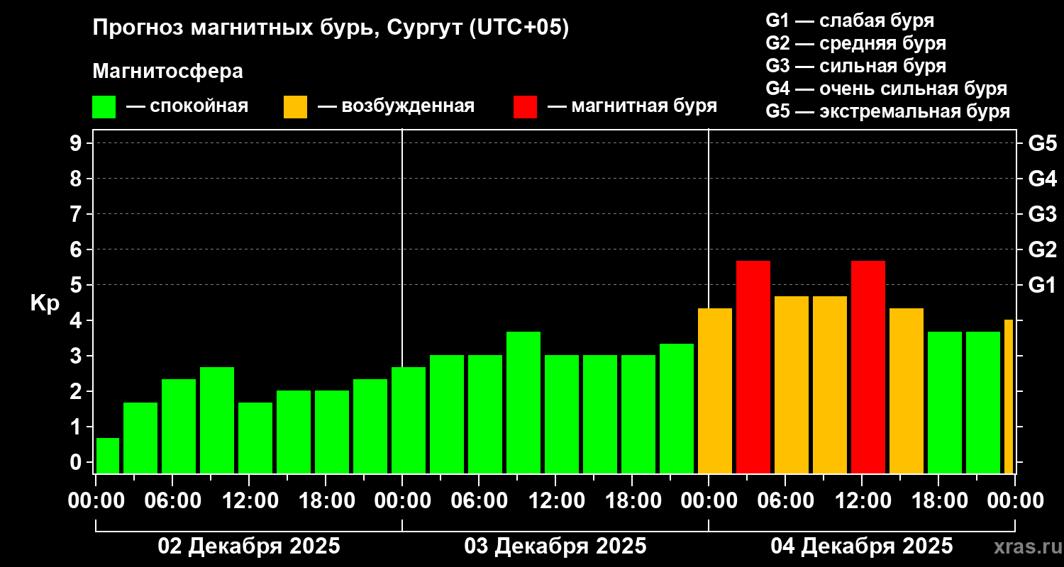 Прогноз магнитных бурь в Сургуте — 2 декабря 2025 года