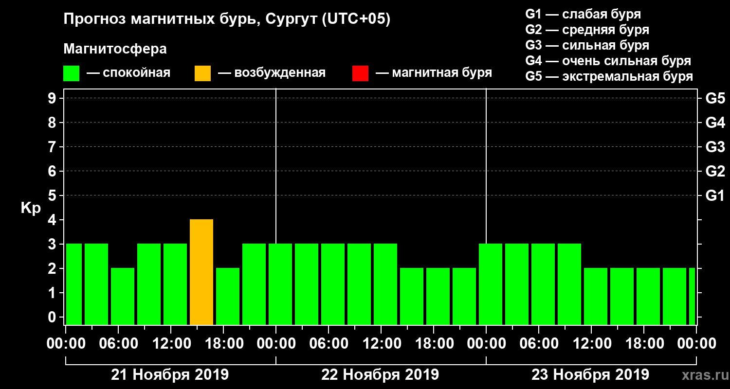 Прогноз магнитных бурь в Сургуте — 21 ноября 2019 года