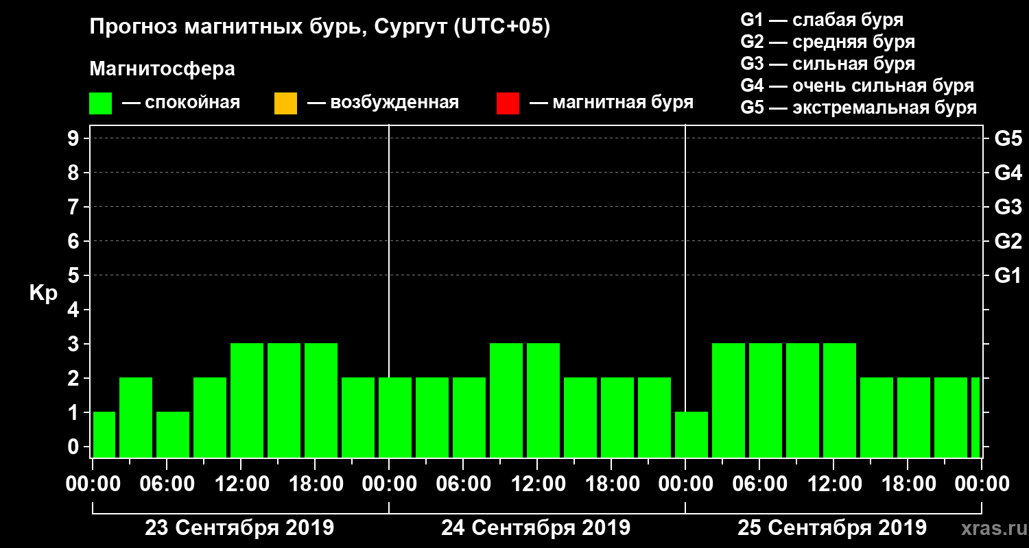 Прогноз магнитных бурь в Сургуте — 23 сентября 2019 года
