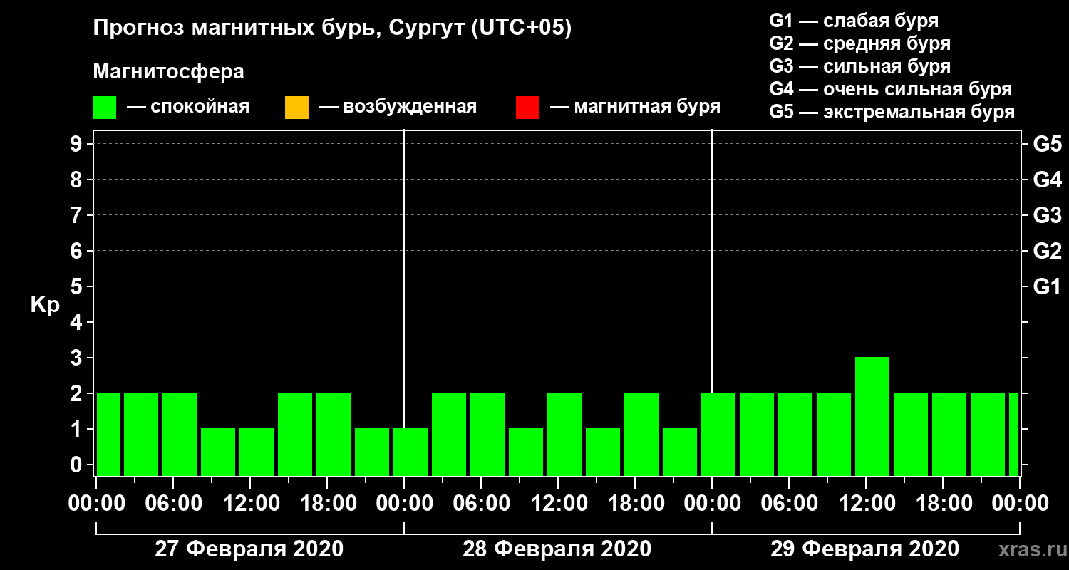 Прогноз магнитных бурь в Сургуте на 27 февраля 2020 года