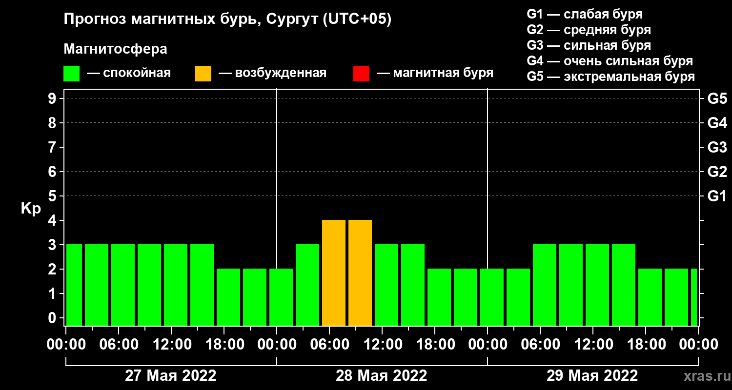 Прогноз магнитных бурь в Сургуте на 27 мая 2022 года