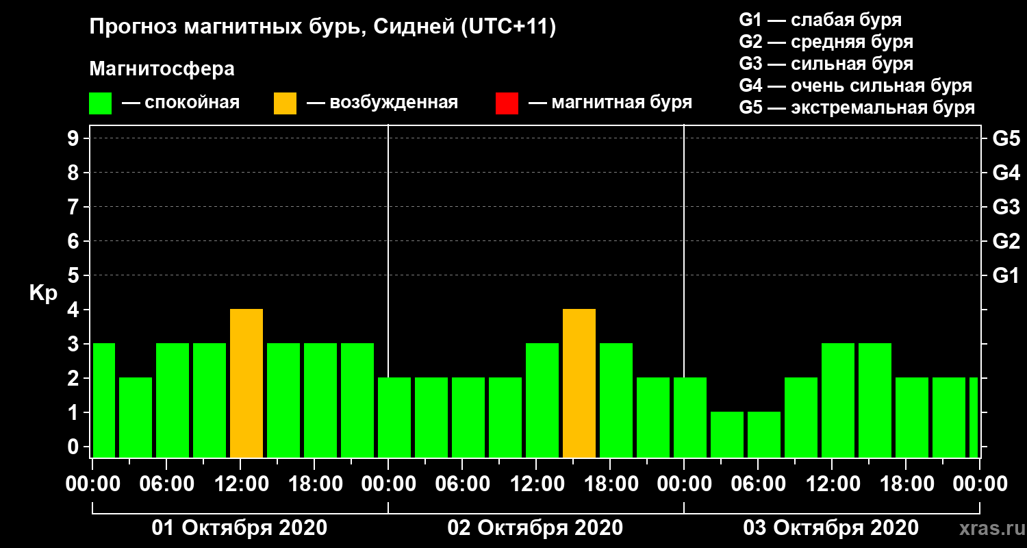 Прогноз магнитных бурь Сиднее на 1 октября 2020 года