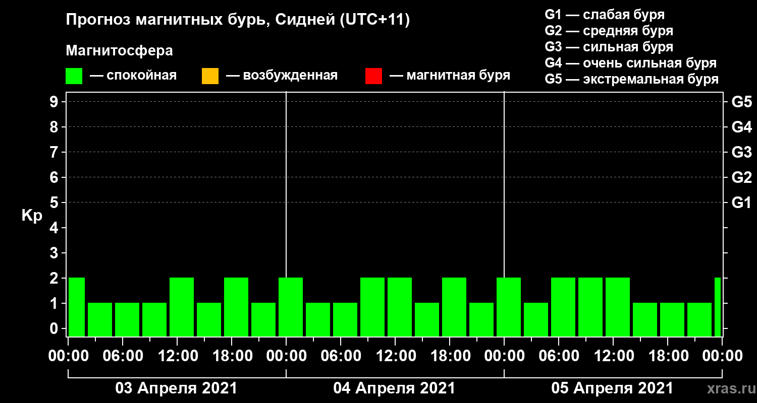 Прогноз магнитных бурь Сиднее на 3 апреля 2021 года