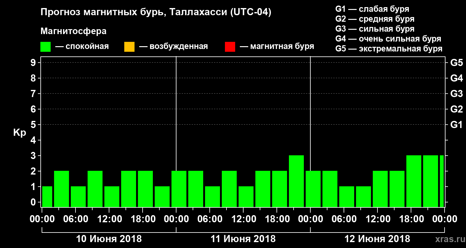 Прогноз магнитных бурь Таллахасси на 10 июня 2018 года