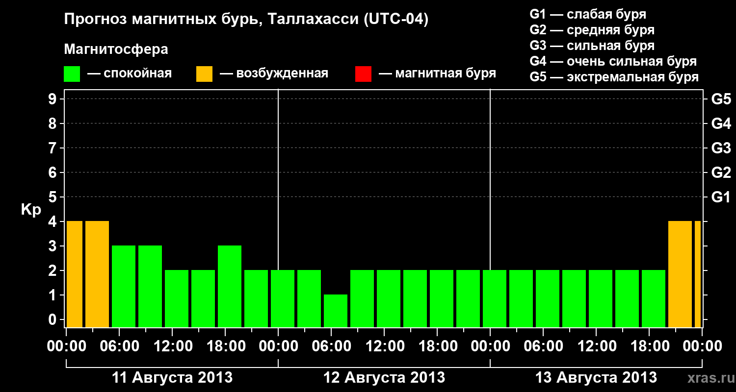 Прогноз магнитных бурь Таллахасси на 11 августа 2013 года
