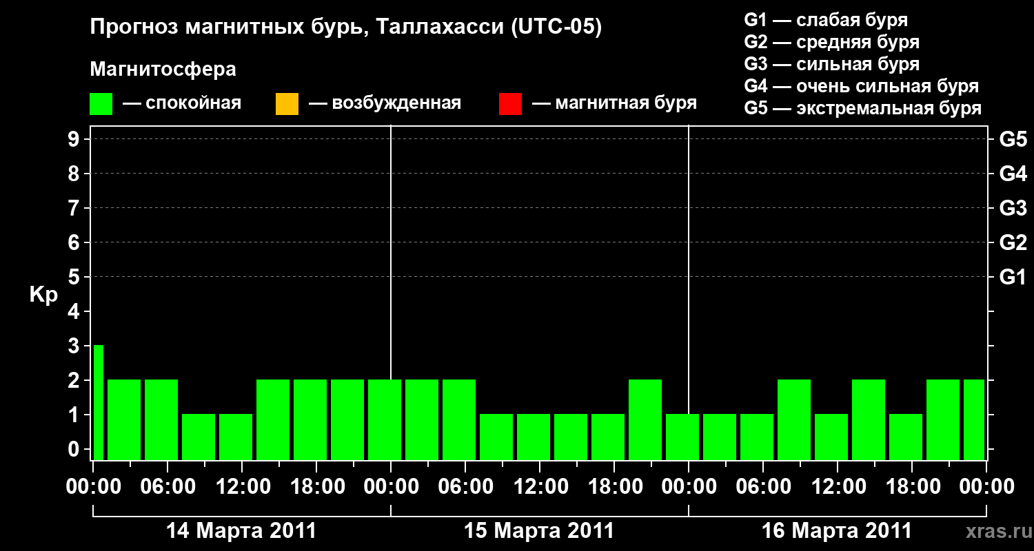 Прогноз магнитных бурь Таллахасси на 14 марта 2011 года