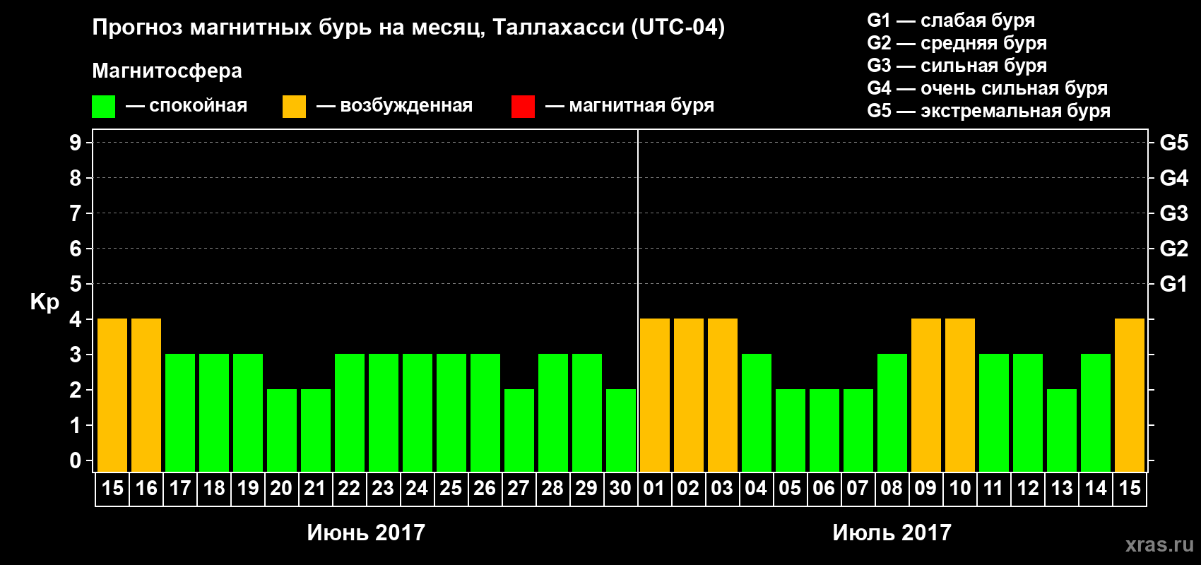 Прогноз магнитных бурь Таллахасси — 15 июня 2017 года