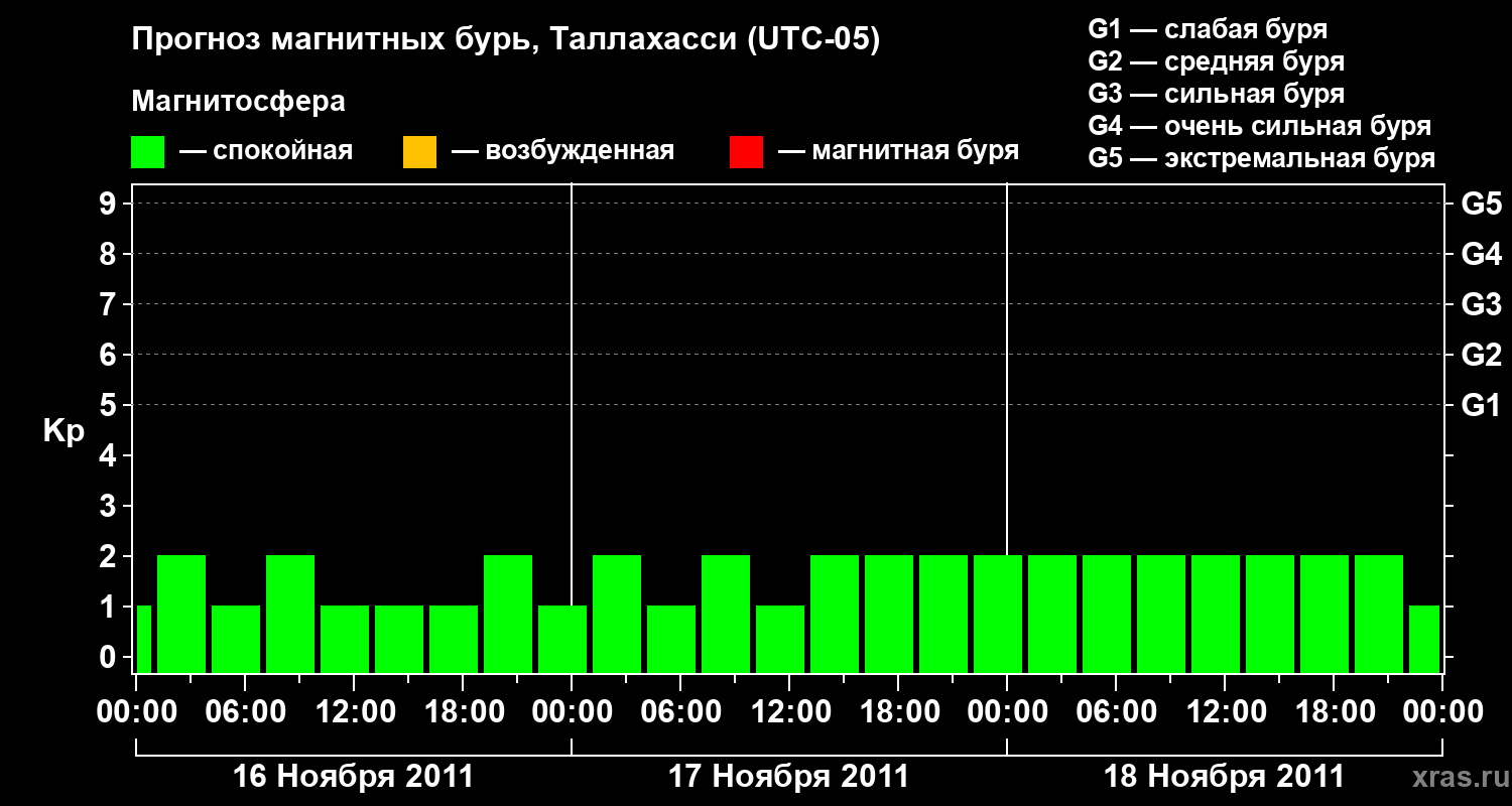 Прогноз магнитных бурь Таллахасси на 16 ноября 2011 года