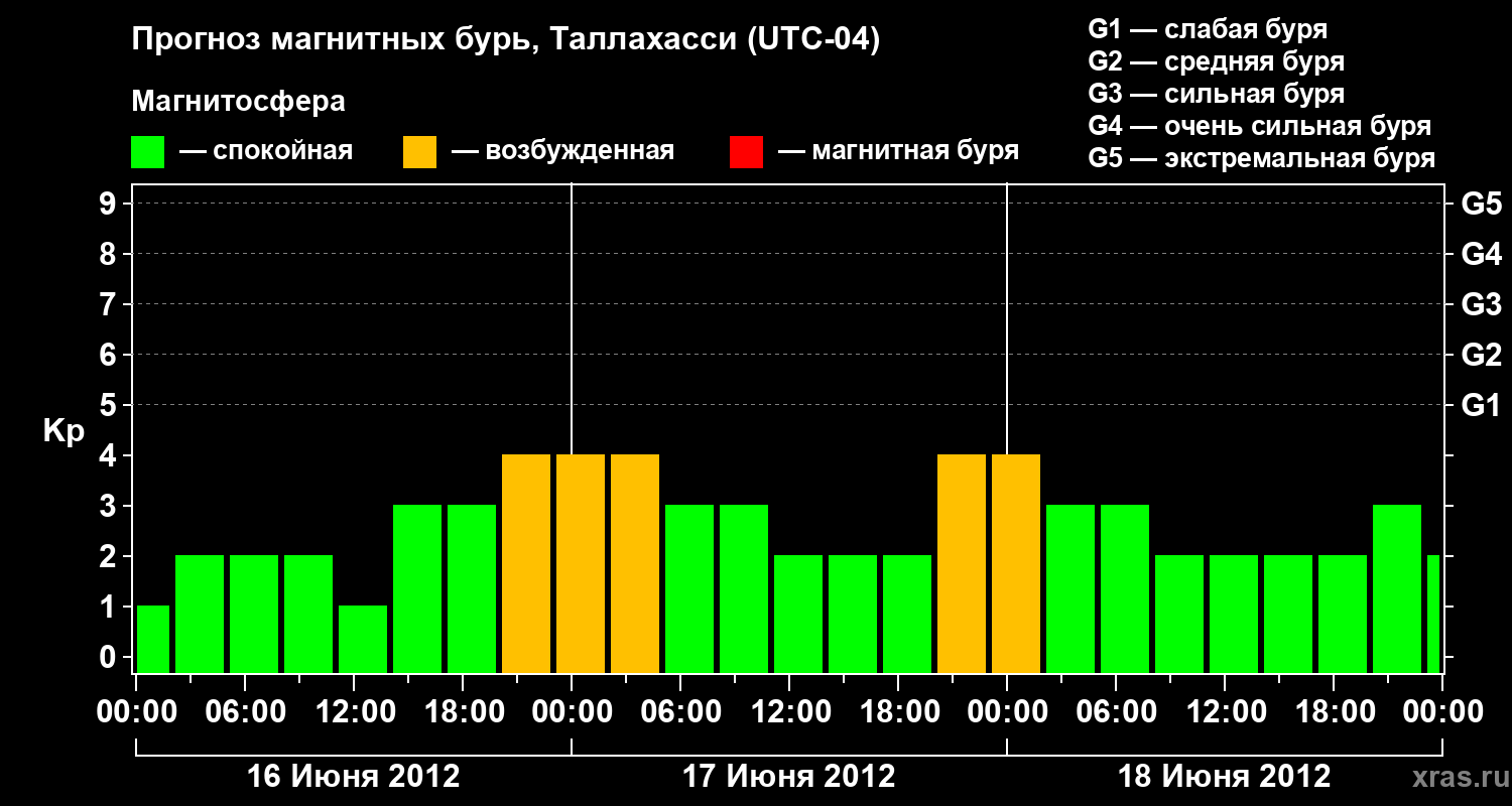 Прогноз магнитных бурь Таллахасси — 16 июня 2012 года