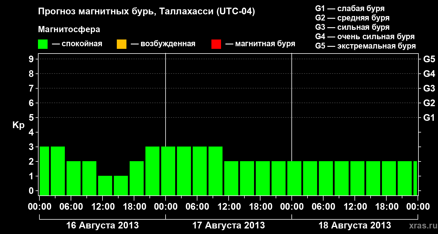 Прогноз магнитных бурь Таллахасси на 16 августа 2013 года