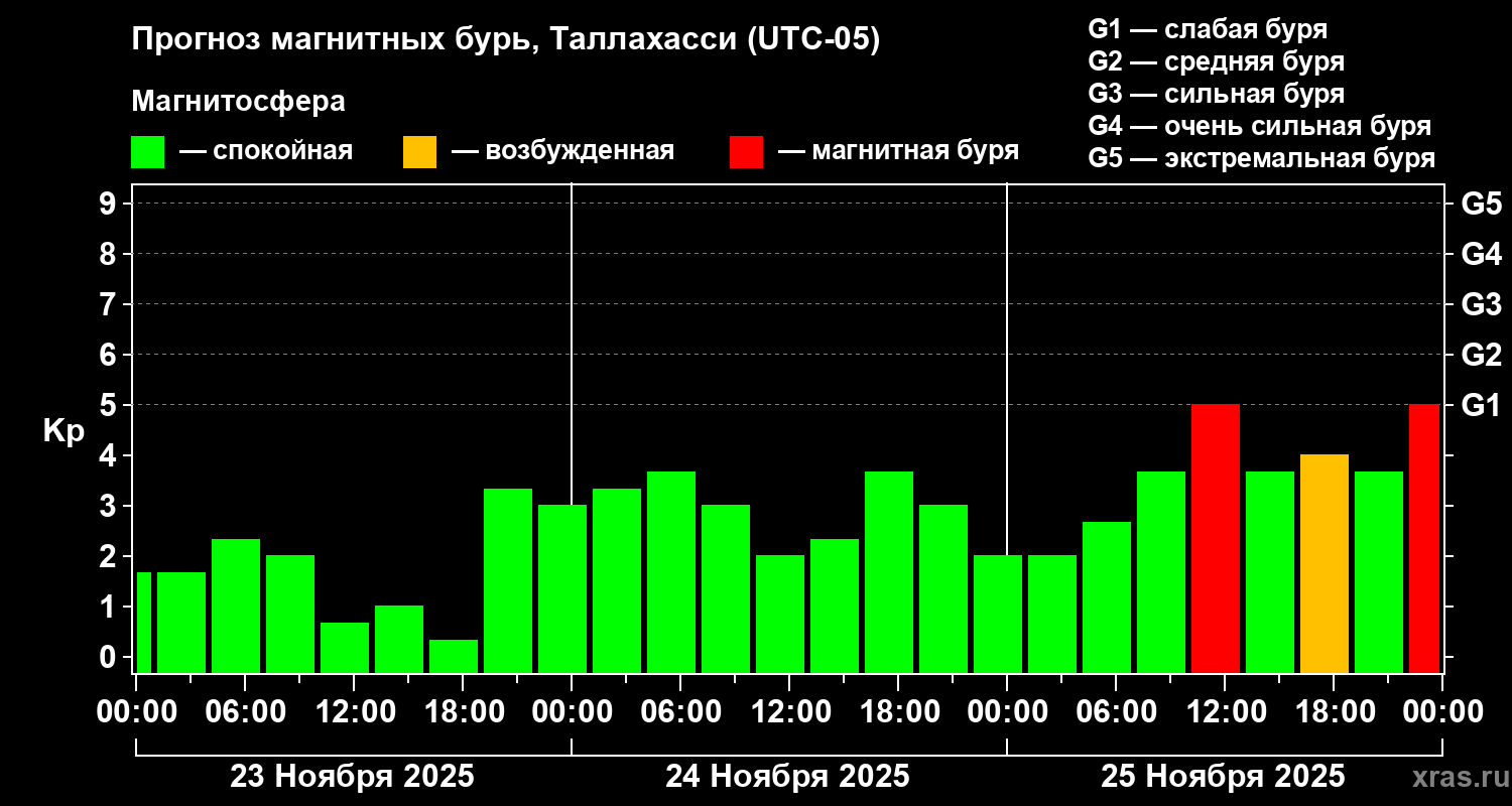 Прогноз магнитных бурь Таллахасси на 23 ноября 2025 года
