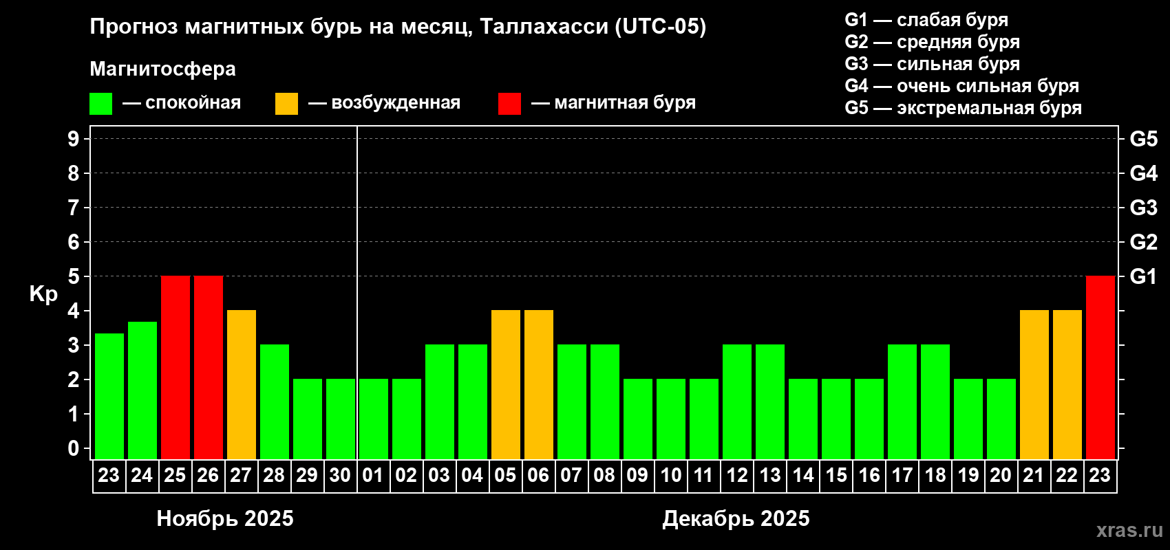 Прогноз магнитных бурь Таллахасси — 23 ноября 2025 года