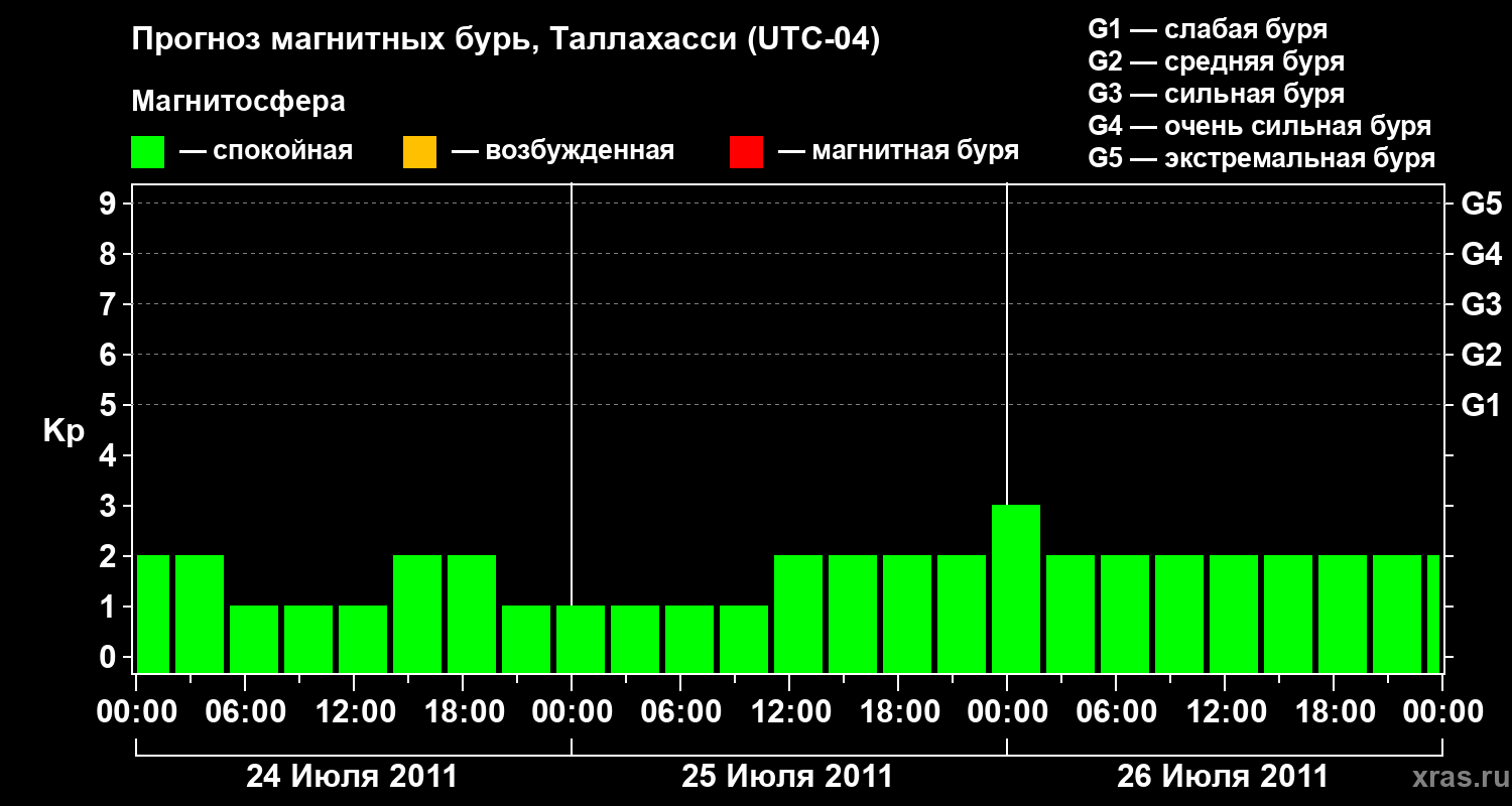 Прогноз магнитных бурь Таллахасси на 24 июля 2011 года